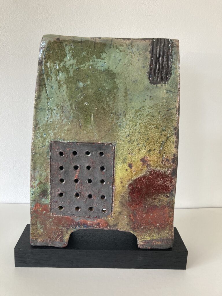 Ineke Moes maakt voor haar keramische vormen veel gebruik van de Japanse raku-stooktechniek. Dat combineert ze graag met andere materialen, zoals bladgoud. Tijdens deze expositie laat Ineke vooral werk met het thema ‘huizen en poorten’ zien, maar ook haar schalen en kei-vormen zullen aanwezig zijn.