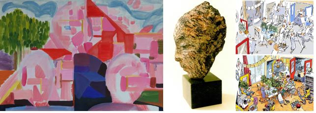 De werken van Roel Ottow zijn niet onder een noemer te vatten. Niet alleen diverse illustraties, maar ook vrij werk en ruimtelijk met diverse materialen. En vaak met een knipoog.