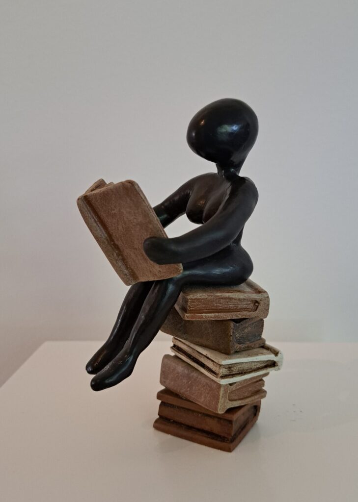We hebben schilderijen, tekeningen, keramiek, papierwerk, foto’s, en nog veel meer. Ook een aantal kunstboeken, van kunstenaars die in de galerie exposeren.
