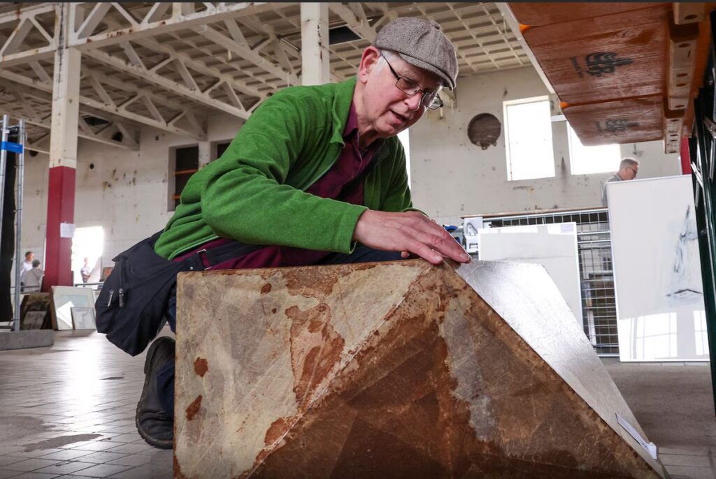 Hij is nog geen twee minuten binnen, of hij heeft een creatie op het oog. En vraagt hij of het even apart gelegd kan worden. In een loods op het Zwitsalterrein is Staverman zondagochtend als een vis in het water.