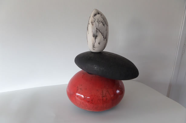 Meestal maak ik ronde objecten, bol- of schaalvormig. Of vogels, maar die zij ook vaak ontstaan uit een halve bol. Mijn werk is meestal raku- of kuilvuur gestookt, dit heeft vaak een toevalstreffer effect en dat maakt het spannend. Ik bouw alles met ringen op, en dat is ook wat mij zo aantrekt in klei. De materie heeft van zichzelf geen vorm, die geef jij eraan. De kunst is om dit strak te doen waardoor is een spanning probeert te creëren in het werk.